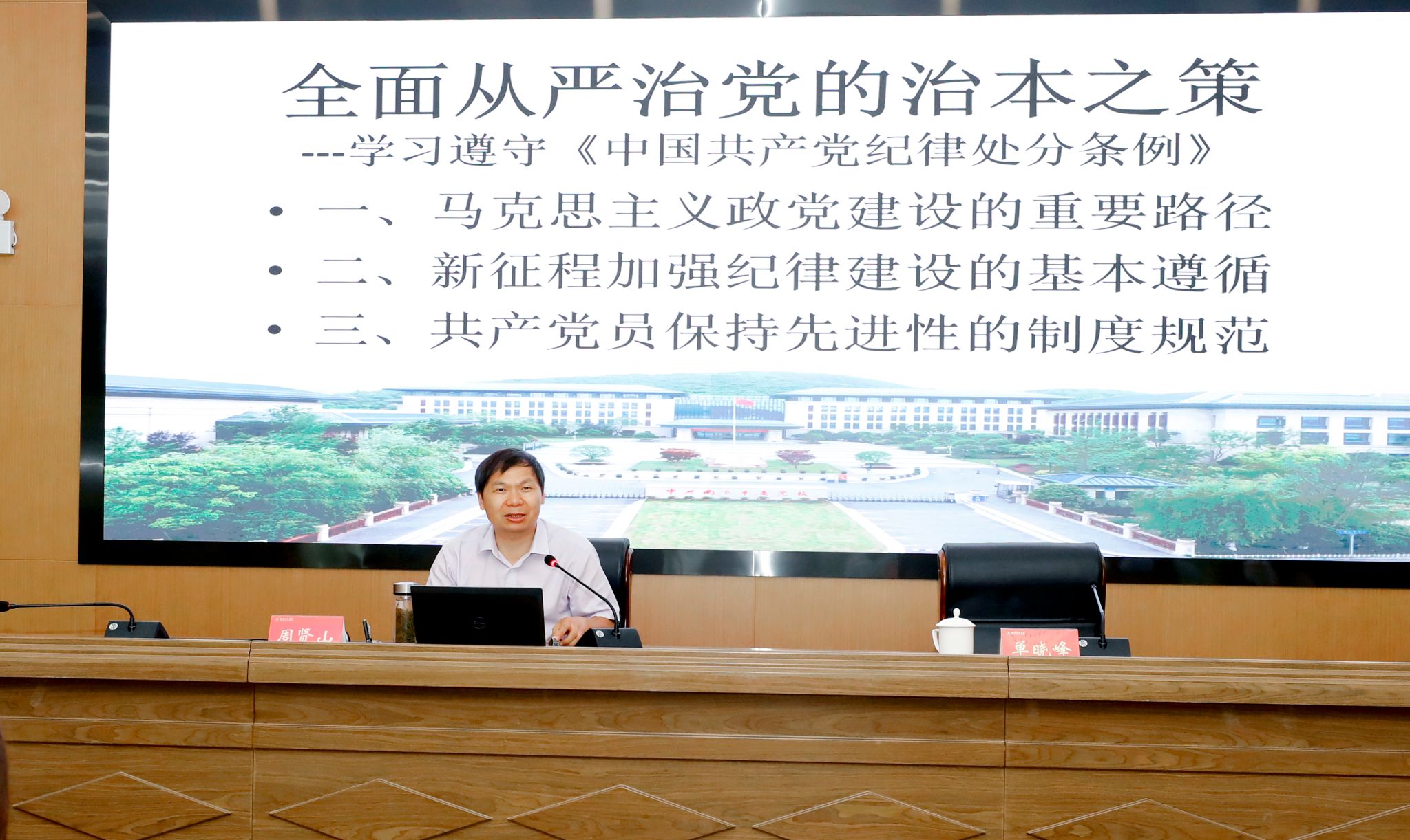 6月17日下午,我校开展《中国共产党纪律处分条例》专题培训,邀请市委党校党史党建教研部周贤山副教授作专题辅导报告。校党委书记刘志远出席并讲话,新提任处级干部、年轻处级干部、关键岗位处级干部参加培训。培训会由校党委副书记单晓峰主持。