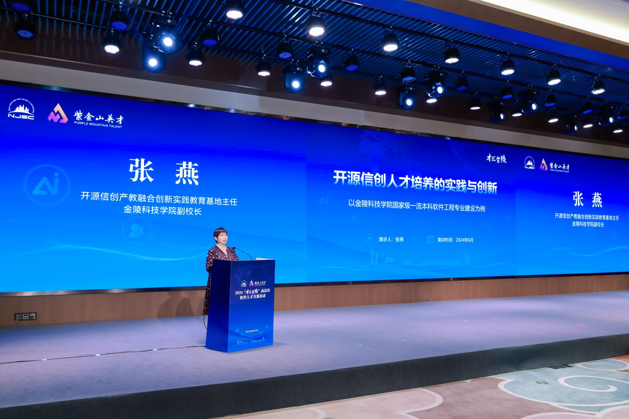 2024“才汇金陵”高层次软件人才交流活动为政府、高校和企业搭建了交流对话平台,活动现场发布了10项产教协同攻关创新成果。江苏省工信厅副厅长池宇为“芯火”行动开源信创产教融合创新实践教育基地授牌,张燕作为基地主任接受授牌。该基地由我校与南京大数据集团、海南智算创新发展研究院共同建设,致力于打造开源信创产业人才培养基地,支撑南京市开源促进中心建设,成为开源促进中心最重要的公共服务平台,服务高校与企业,稳定输出产业亟需的高技术、高技能型人才,形成开源信创人才资源池,贯通职前和职后教育,有效促进人才链、产业链、教育链深度融合、精准对接,推动南京成为信息技术自立自强和开源生态领域的人才高地。