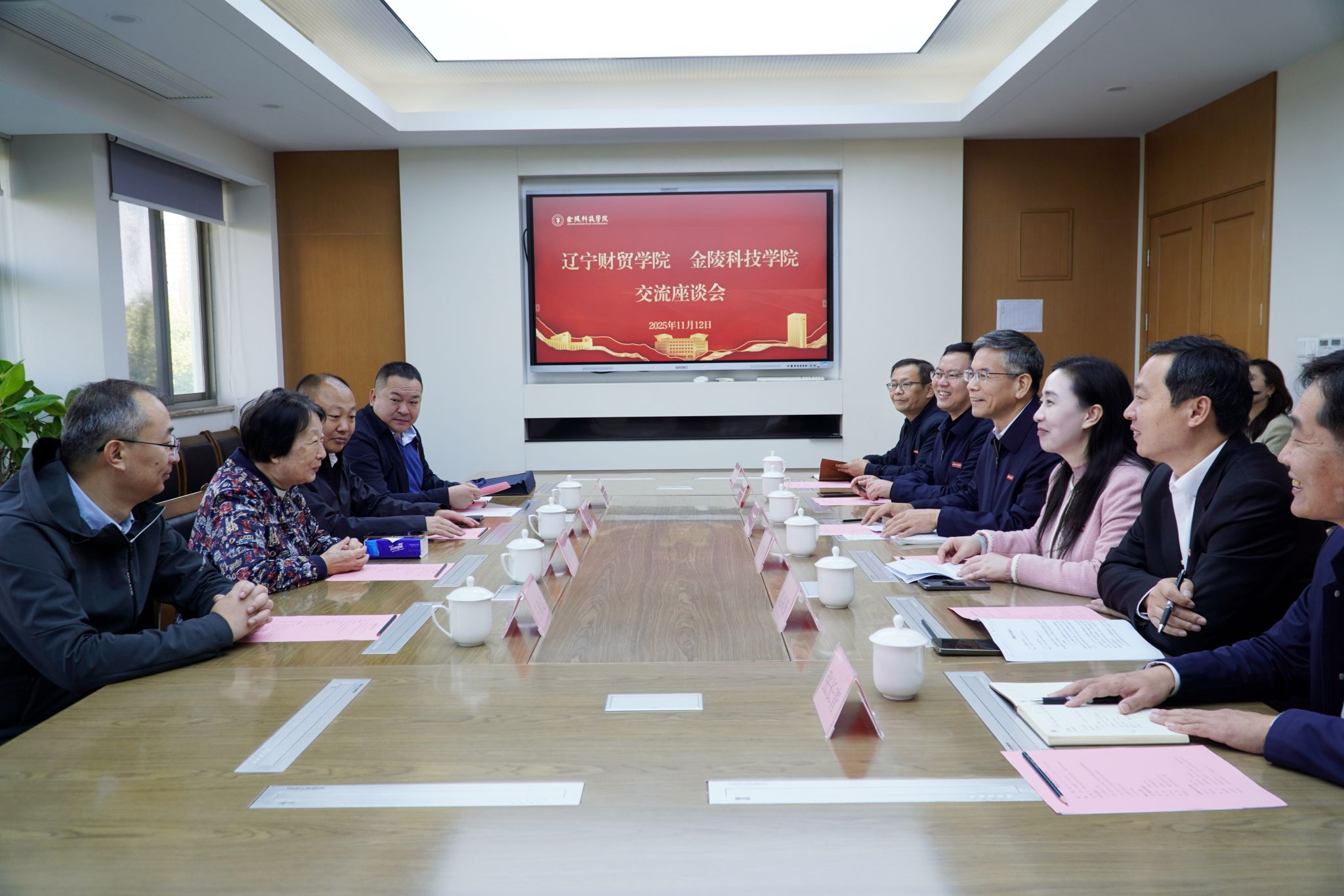 11月12日,辽宁财贸学院党委书记郭立新、党委副书记徐嘉、副校长王希达一行来我校调研交流。我校党委书记刘志远、副校长顾晓燕接待。双方相关部门负责人参加座谈。