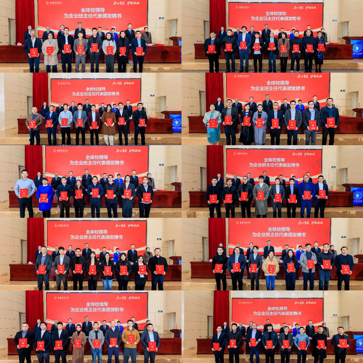 在热烈的掌声中,校领导为企业班主任颁发“企业班主任”“就业护航大使”聘书,期待他们以企业家精神与工匠精神,助力金科学子成长为兼具理论素养与实践能力的应用型人才。