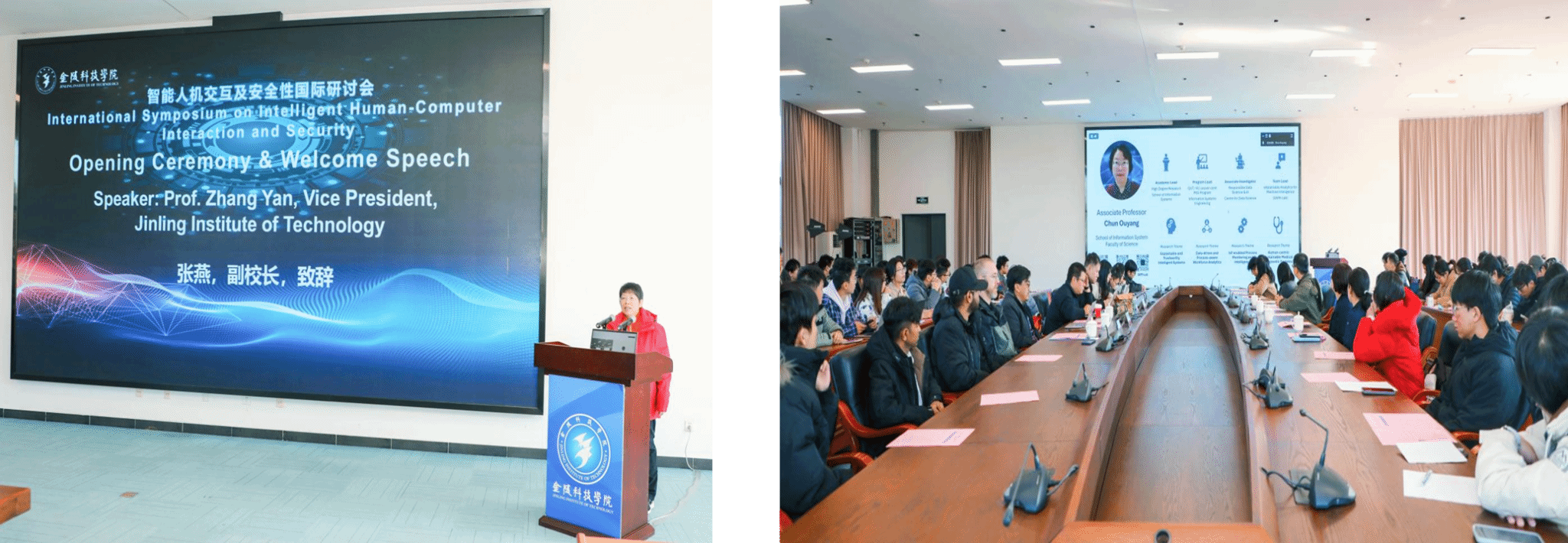 11月29日,第二届智能人机交互及其安全性国际研讨会(International Symposium on Intelligent Human-Computer Interaction and Security)在我校科技楼3-110会议室成功召开。会议采用线上线下融合方式,旨在深化智能人机交互及其交叉创新领域的学术交流,推动软件工程与人工智能学科高质量发展。会议特邀五位海内外专家学者作专题报告,包括澳大利亚昆士兰科技大学欧阳春副教授、杭州纯迅生物科技有限公司总监Chee Meng Benjamin Ho博士、莫纳什大学杜岚副教授、迪肯大学祝烨副教授以及我校Tom Lotz 副教授。副校长张燕出席并致辞。国际交流与合作处、软件工程学院教师代表,电子信息专业学位硕士点全体研究生以及留学生代表共同参会。