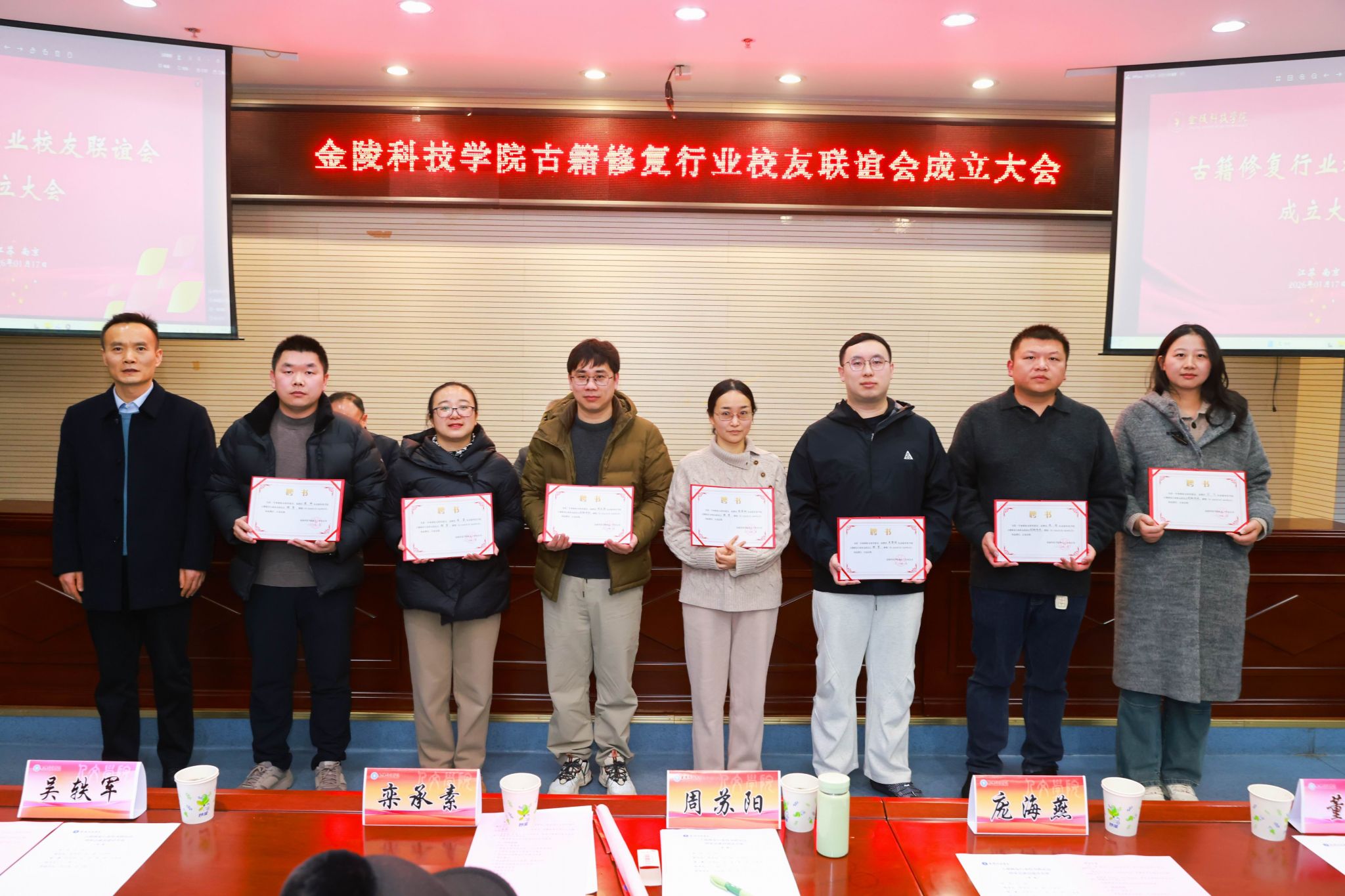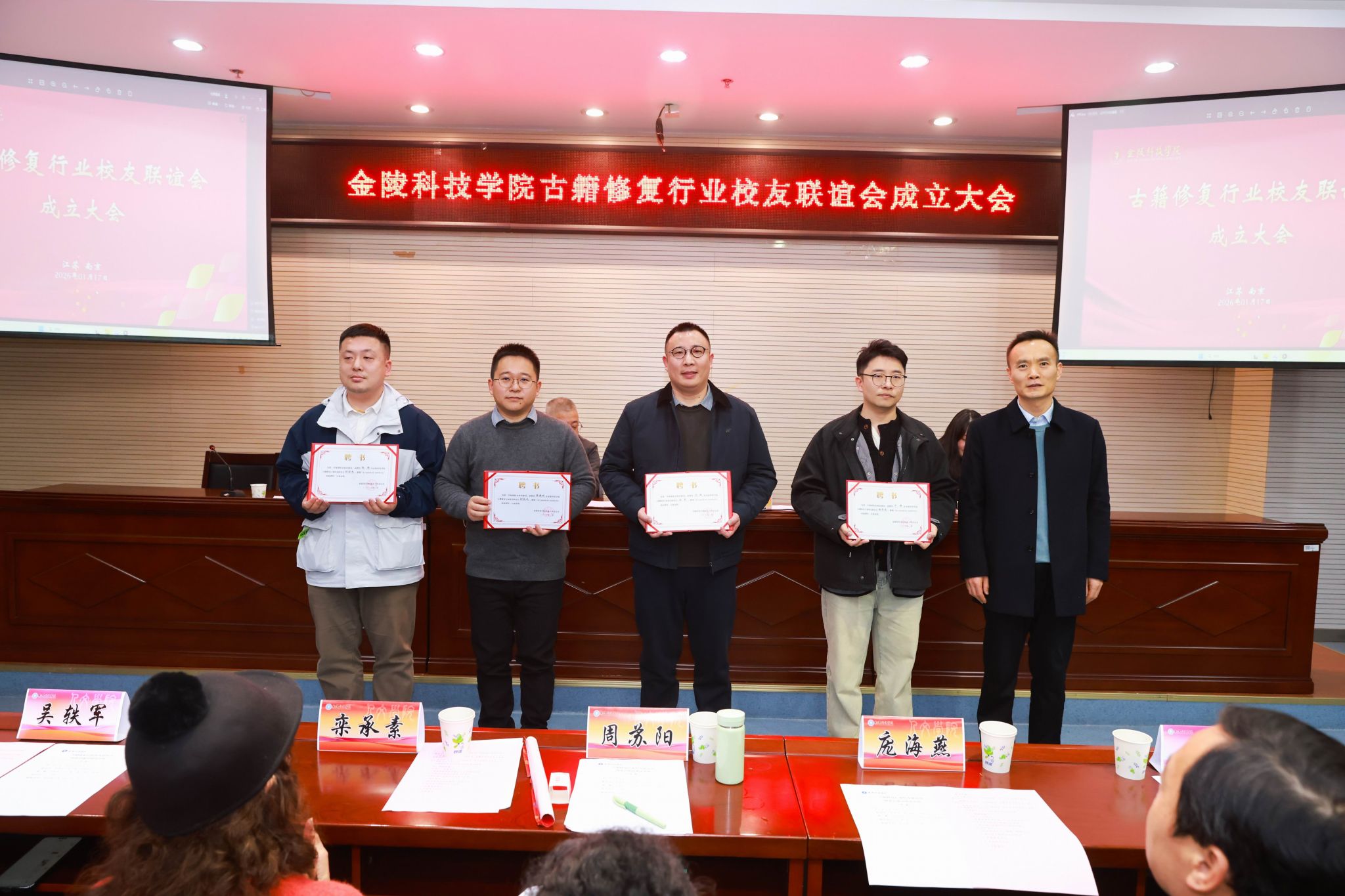 古籍修复行业校友联谊会由优秀校友沈斌、臧春华、秦德斌、丁锋等担任发起人,组织超过300名古籍修复专业及相关行业校友参与。成立大会上,50余名来自浙江、四川、安徽、湖北、河南、广东、江苏等地的校友返校参加,共同见证。