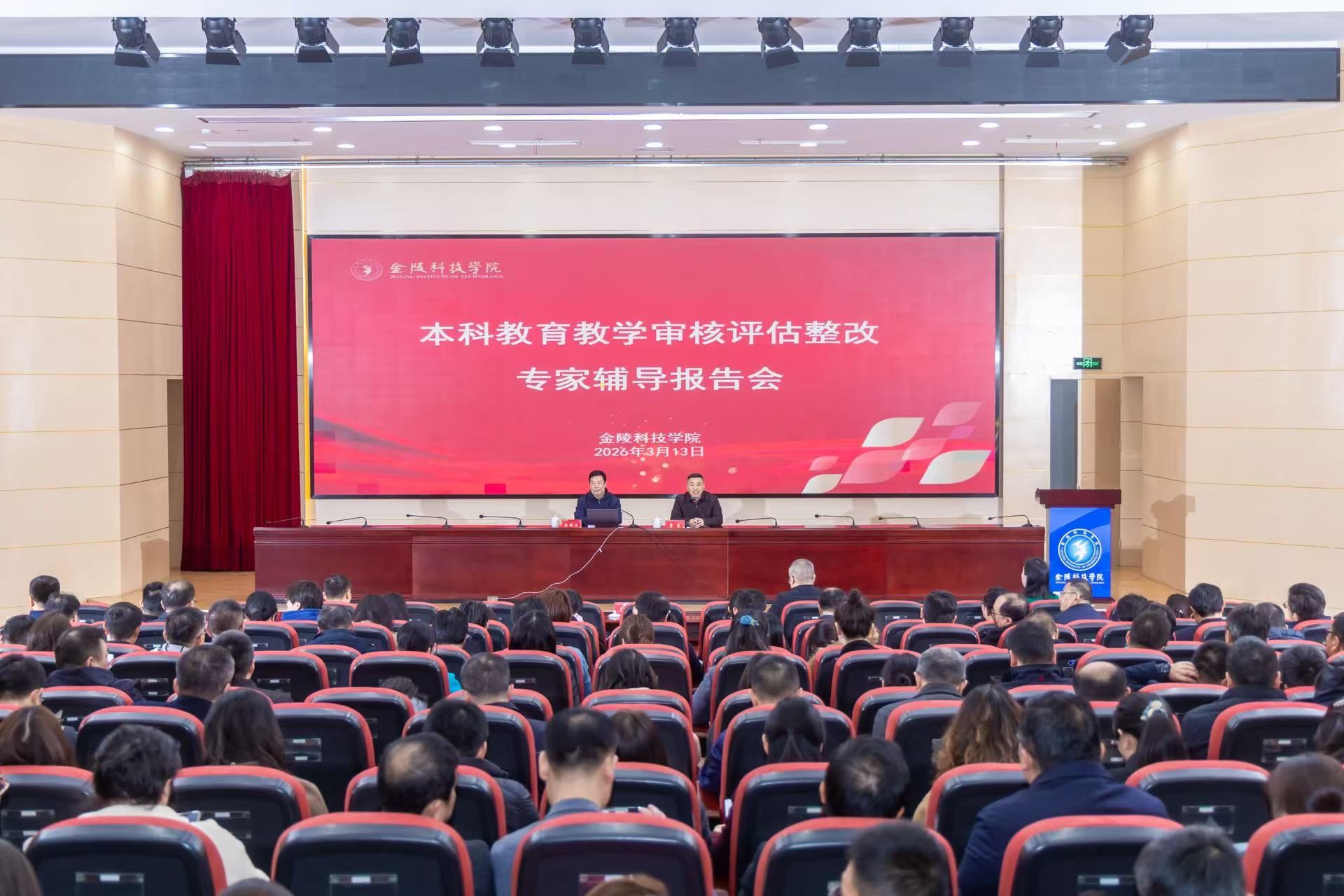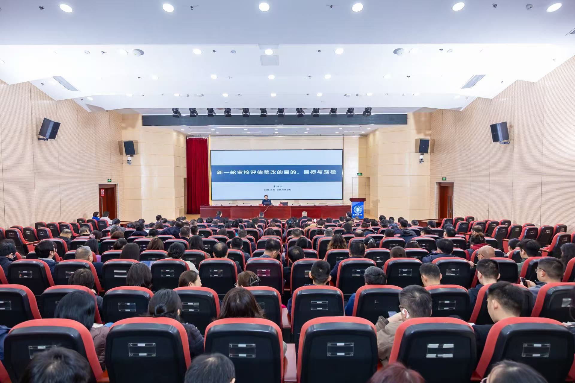 为更好地贯彻落实教育部《普通高等学校本科教育教学审核评估实施方案(2021-2025年)》《江苏省普通高等学校本科教育教学审核评估实施方案(2021-2025年)》及我校《本科教育教学审核评估整改方案》等文件要求,进一步推动我校审核评估整改工作落实落细,3月13日下午,学校邀请教育部本科教育教学审核评估资深专家、江苏理工学院原党委书记朱林生教授来校作本科教育教学审核评估整改专题辅导报告。校长季赛主持报告会并讲话。全体校领导、全体中层干部、各专业负责人、各学院教务科负责人、教师代表、辅导员代表、学生代表、教学督导员代表以及教务处、教学质量评估中心相关工作人员等200余人参加会议。