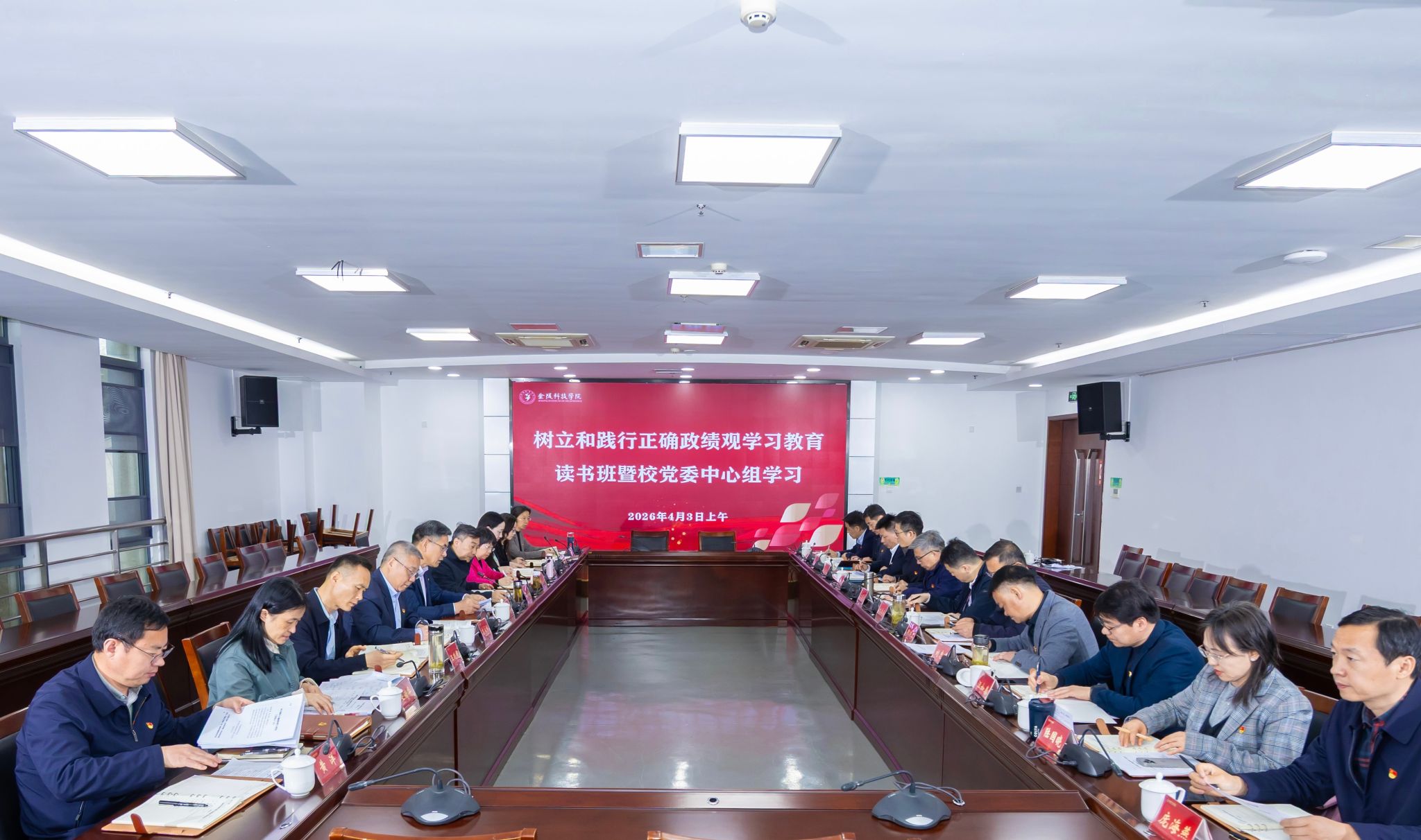 为深入学习贯彻习近平总书记关于树立和践行正确政绩观的重要讲话与重要指示精神,进一步增强党员领导干部的政治自觉、思想自觉和行动自觉,助力“十五五”开局之年各项工作提质增效,4月初,我校举办树立和践行正确政绩观学习教育读书班暨党委理论学习中心组学习会。校党委书记刘志远作开班讲话,全体校领导、校党委委员及处级以上干部参加了此次学习。