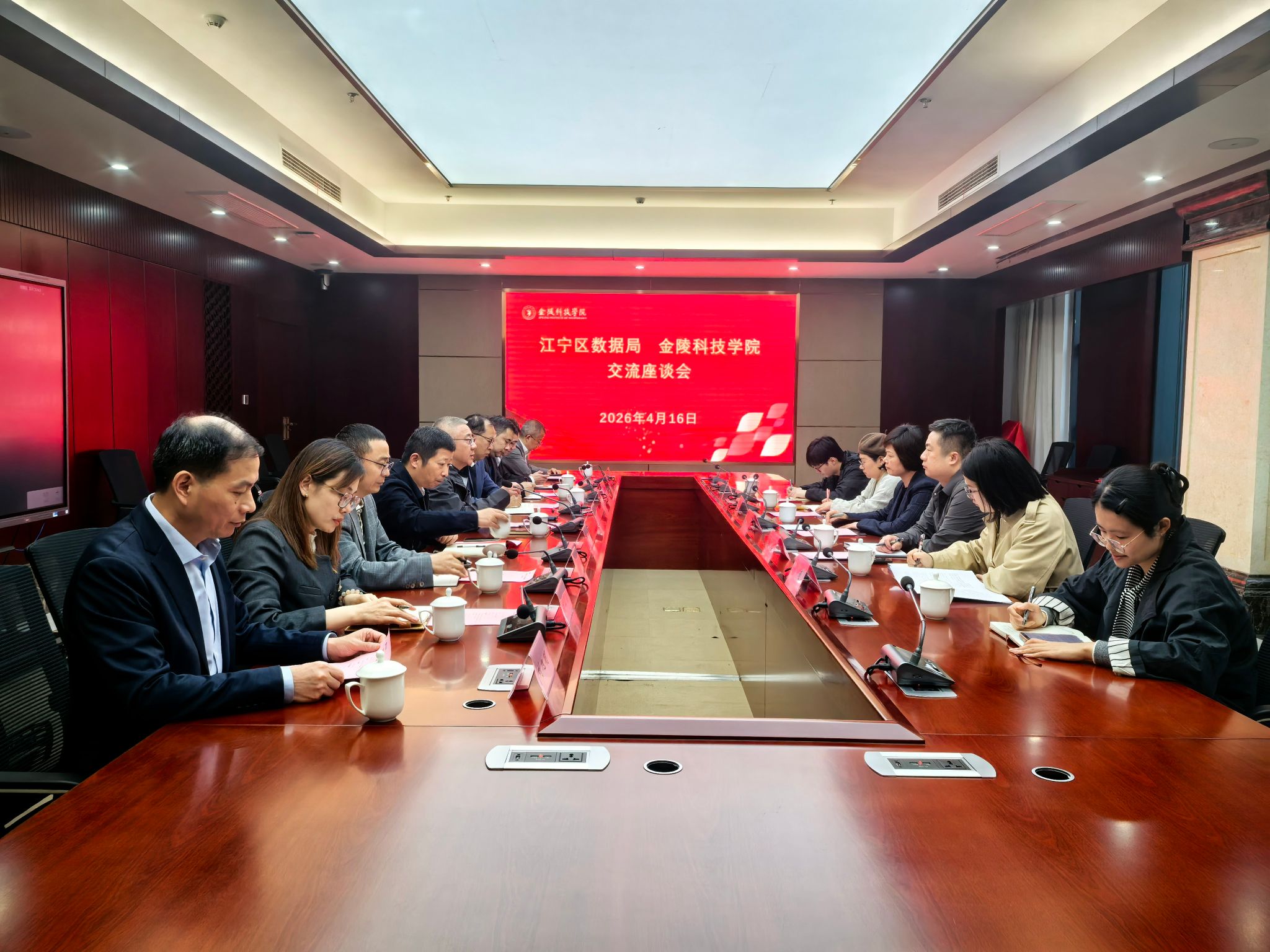 4月16日,江宁区数据局局长张燕率队来校调研交流,校党委副书记高永祥热情接待张燕一行,商学院、软件工程学院、计算机工程学院、网络安全学院、动漫学院、理学院、信息化建设与管理中心和校地融合工作专班等院部负责人参加座谈。