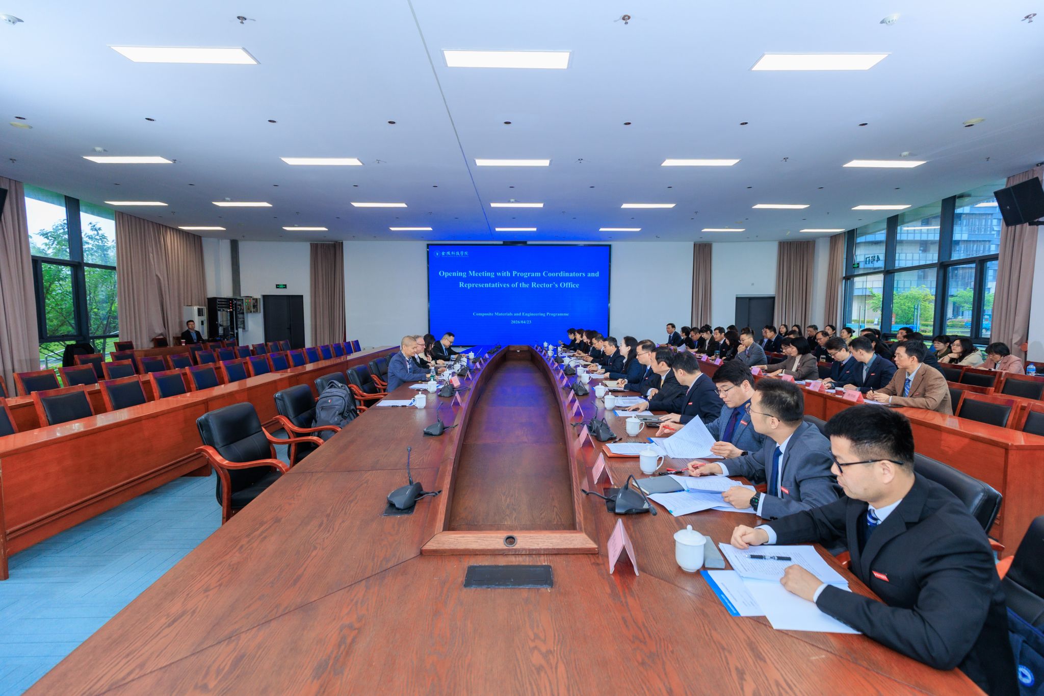 4月23日上午,学校召开ASIIN国际认证专家见面会暨职能部门访谈会。校长季赛、副校长顾晓燕出席会议,相关职能部门负责人、材料工程学院领导班子及复合材料与工程专业全体专任教师参加会议。会上,季赛对认证专家组一行表示热烈欢迎和诚挚感谢,全面介绍了学校办学定位、发展历程、学科专业布局、办学特色与育人成效,重点介绍了学校助推工科专业国际化建设、统筹资源全力支持复合材料与工程专业推进ASIIN国际认证的各项保障措施,并围绕专业办学底蕴、师资结构、课程体系、实践平台、人才培养质量等方面,详细介绍了复合材料与工程专业建设整体情况。Alexander Buesgen简要阐明了本次现场考查的工作目标、考查流程及评审标准。专家组围绕专业内涵建设、教学质量管控、实践教学开展、校企合作协同、持续改进机制等重点内容,与各职能部门负责人进行专项访谈,深入交流核查相关办学支撑情况。